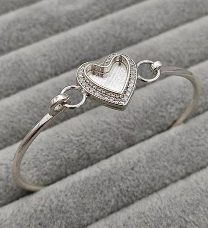 Silver heart bangle with cubic zirconia