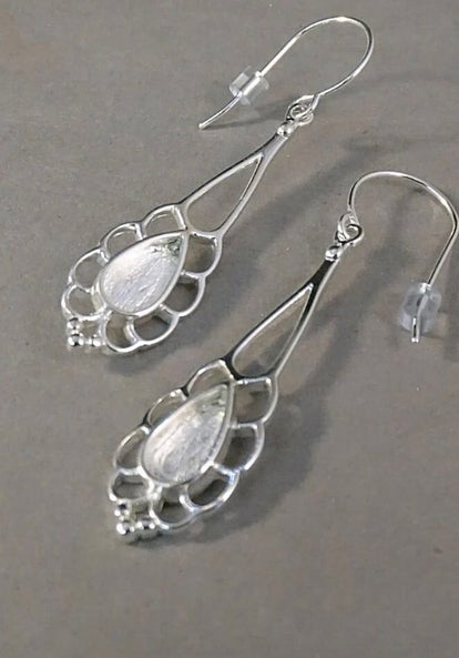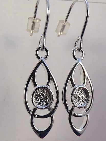 Silver Celtic style angel wing drop earrings. Setting 8 x 6 mm