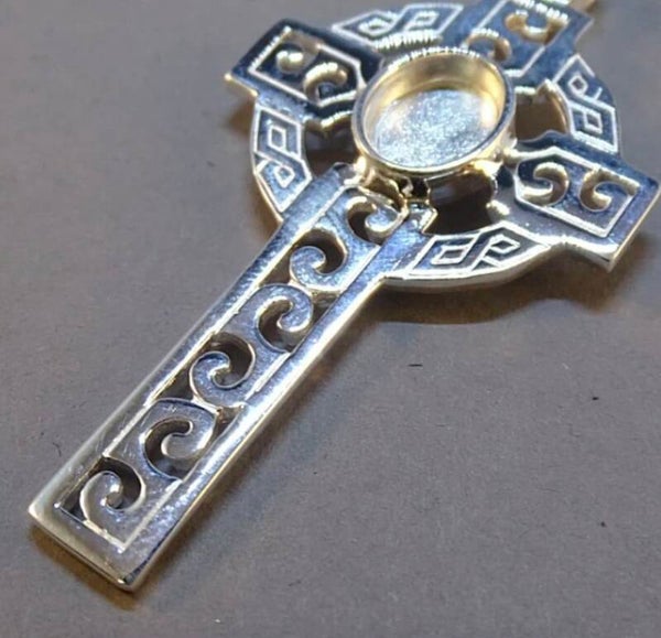 Silver Celtic style cross pendant with 10 x 8mm setting