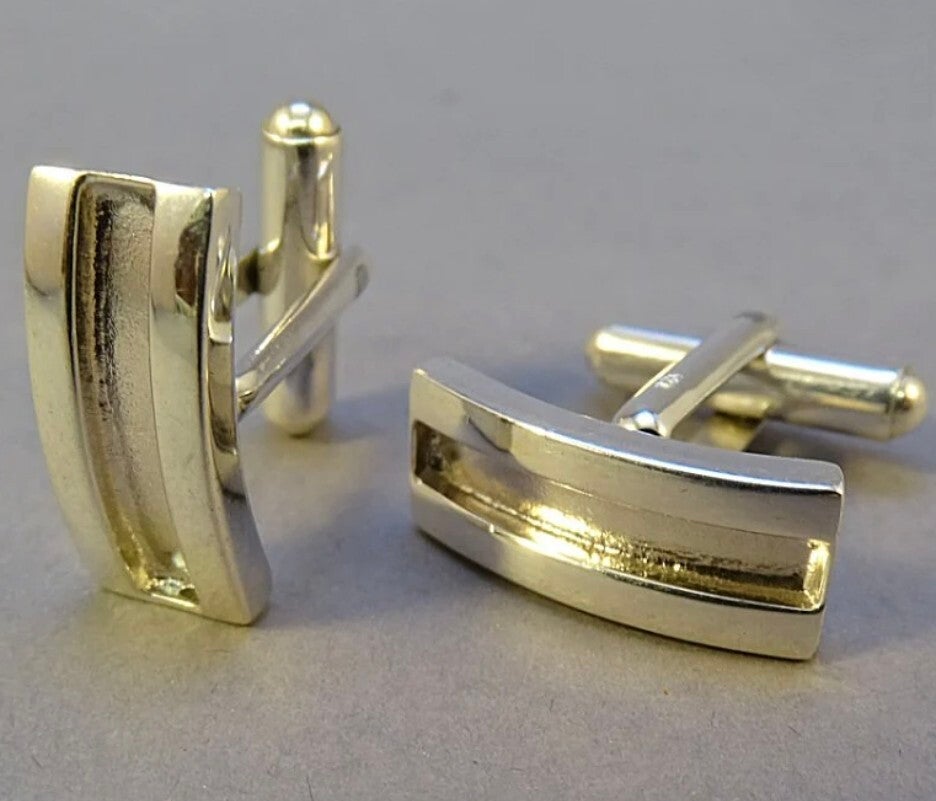 Silver rectangle cufflinks with channel